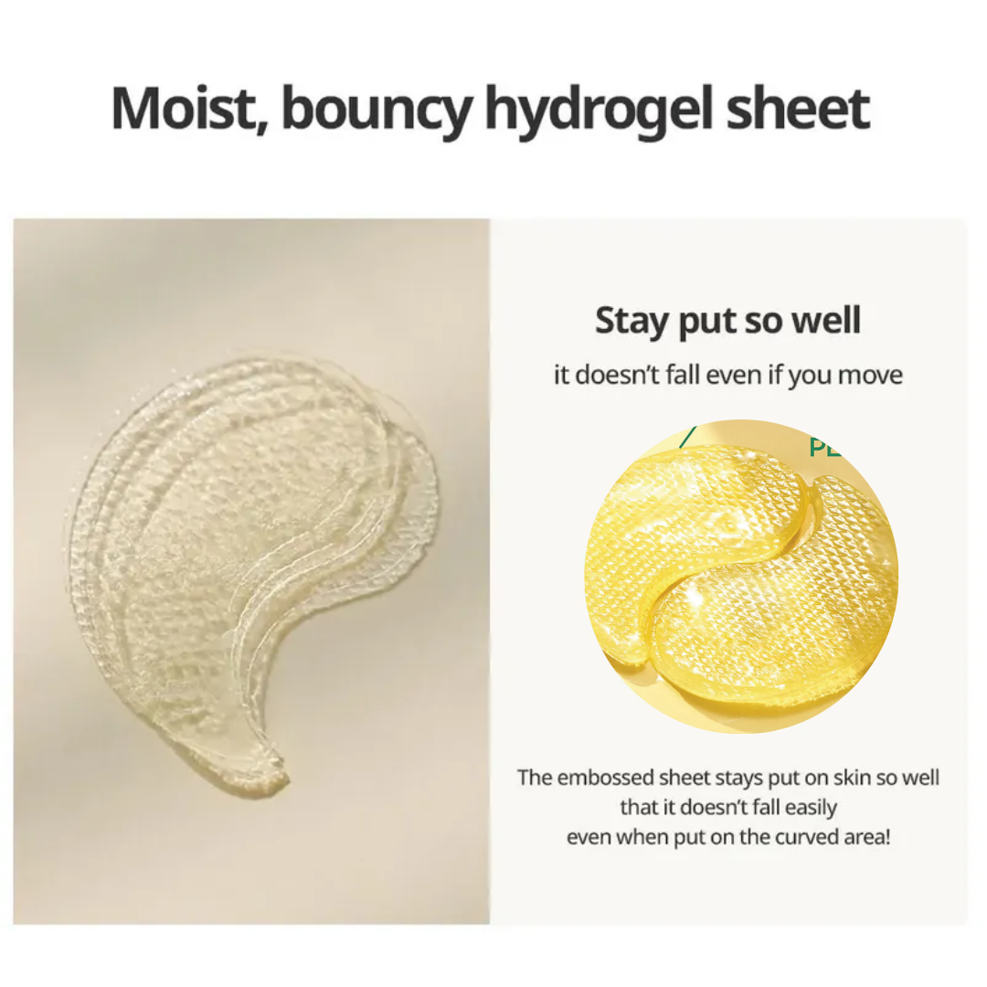 - Slightly bouncy, embossed hydrogel that doesn't slide off your face easily